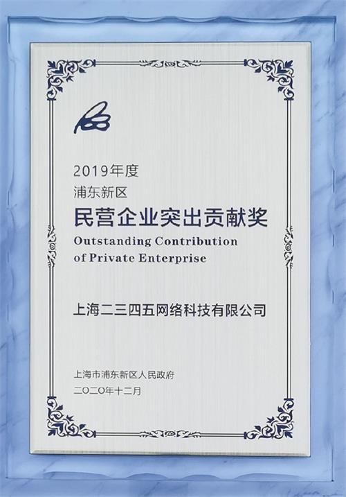 (二三四五榮獲2019年度浦東新區(qū)民營(yíng)企業(yè)突出貢獻(xiàn)獎(jiǎng)20強(qiáng))